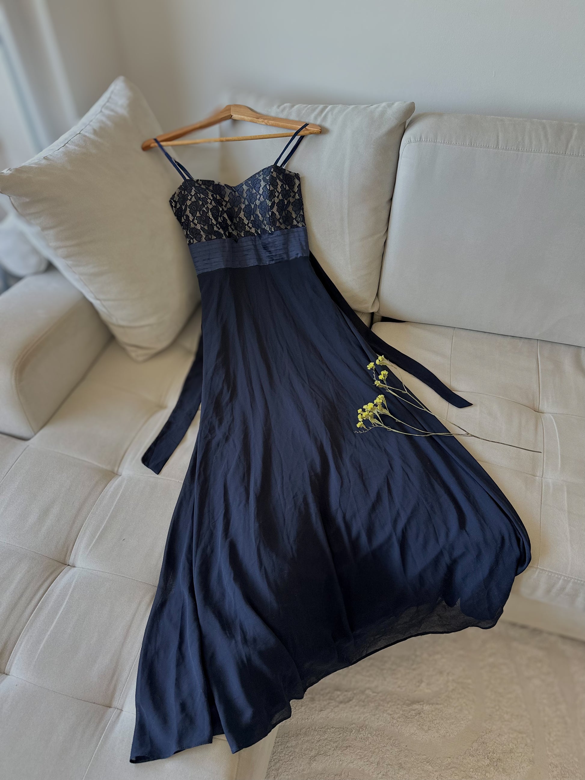 Фустан со корсет крој, при што обемот околу струкот лесно се прилагодува со текстилна лента поставена под корсетот, должината на прерамките исто така може да се подесува