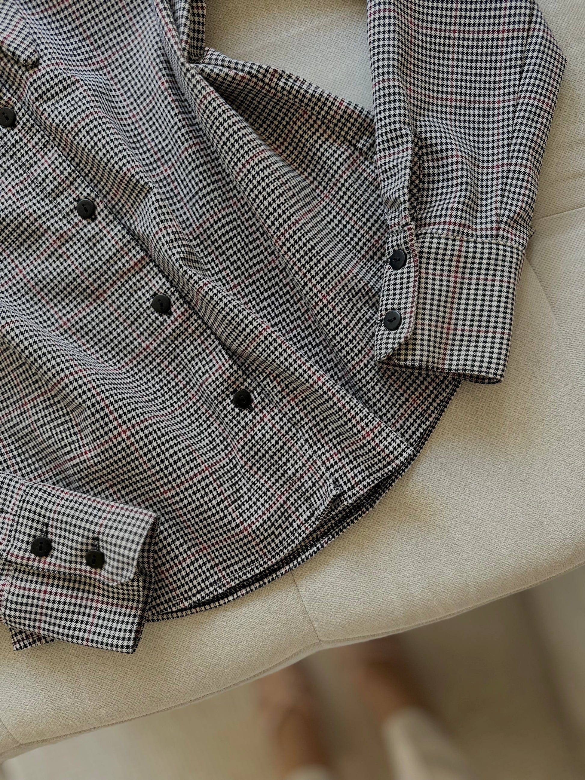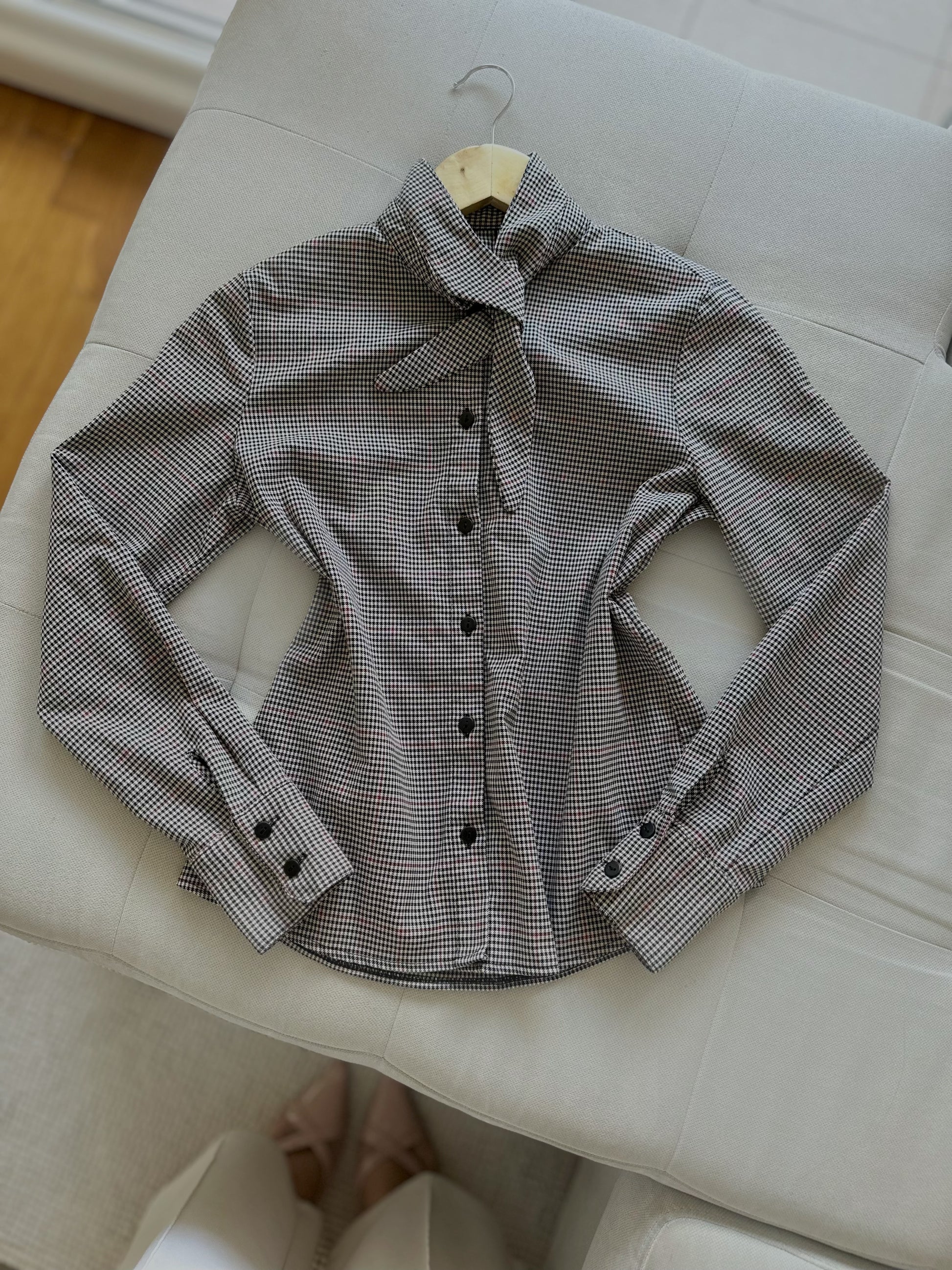 Кошула со уникатна јака што овозможува повеќе начини на носење, прилагодувајќи се на различни стилови и прилики