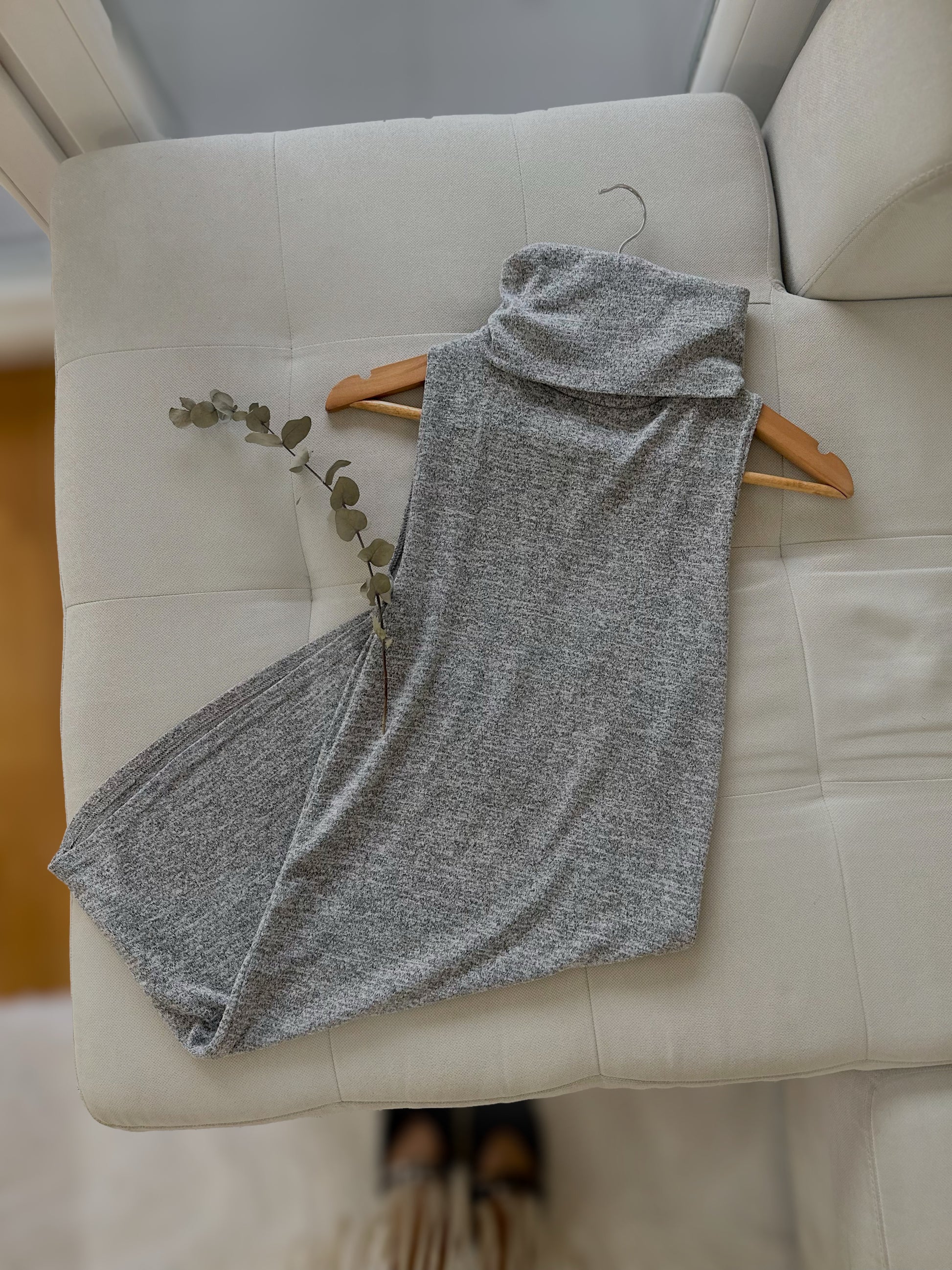 Сив ролка-фустан со мек и еластичен материјал.