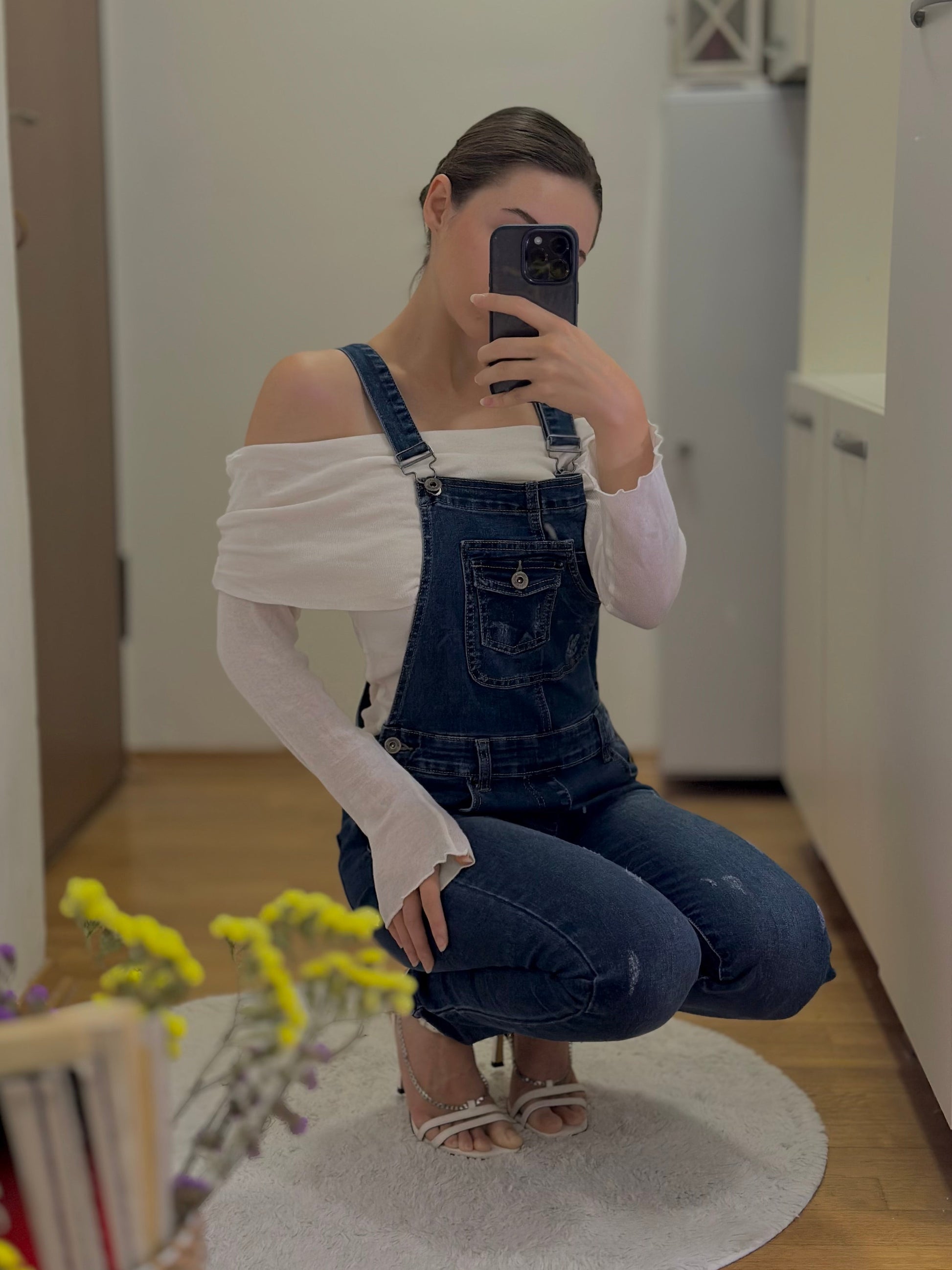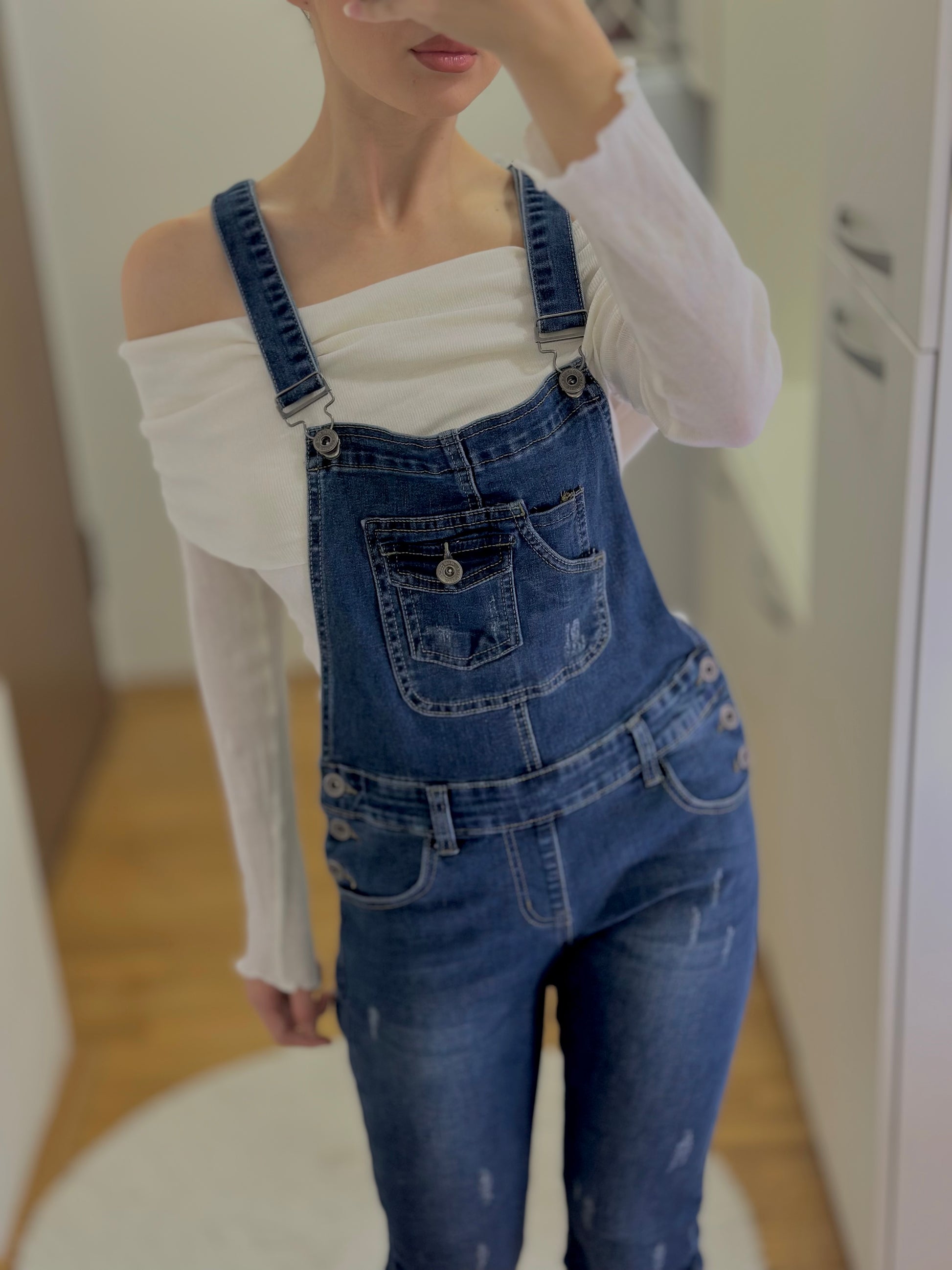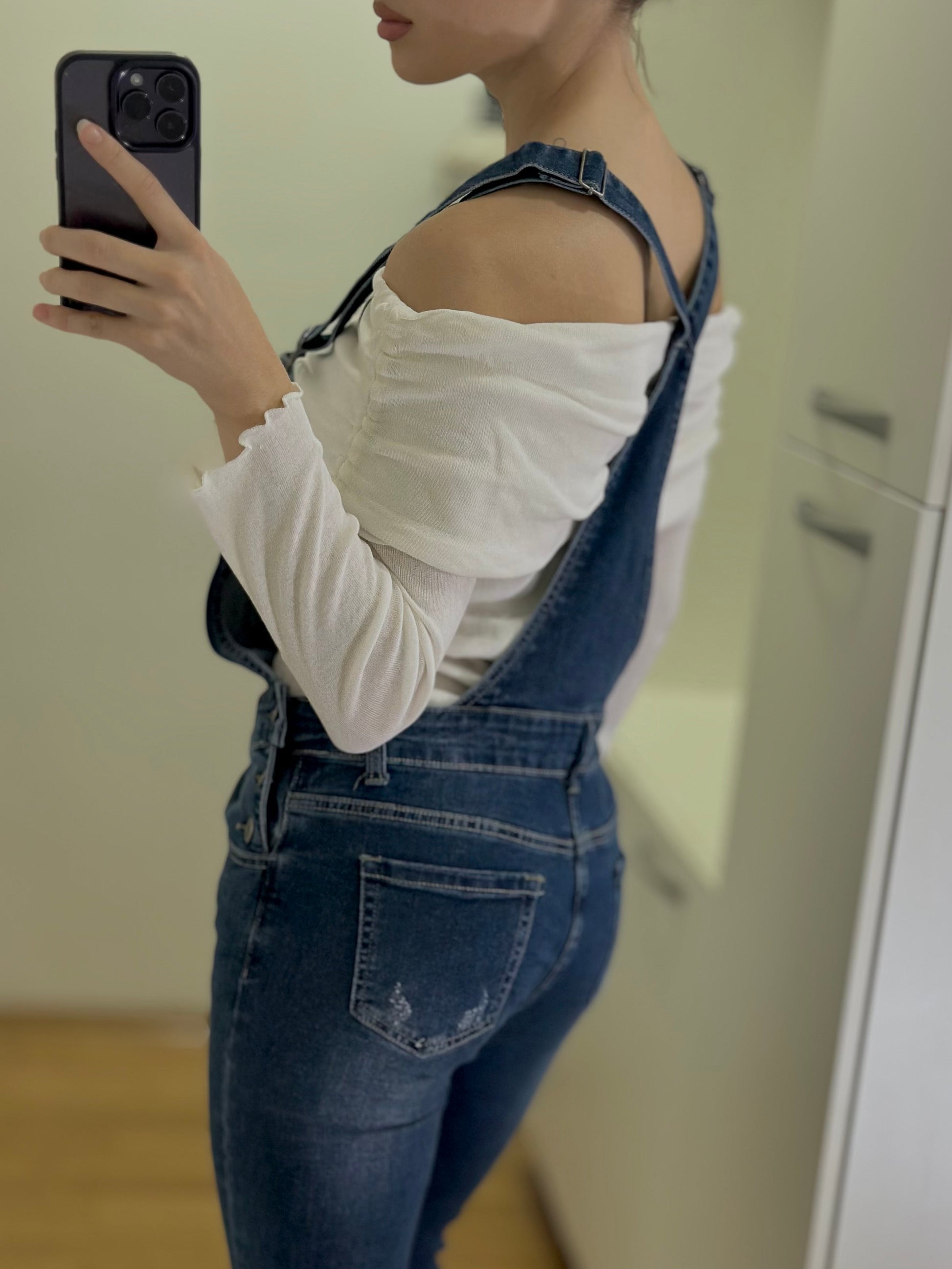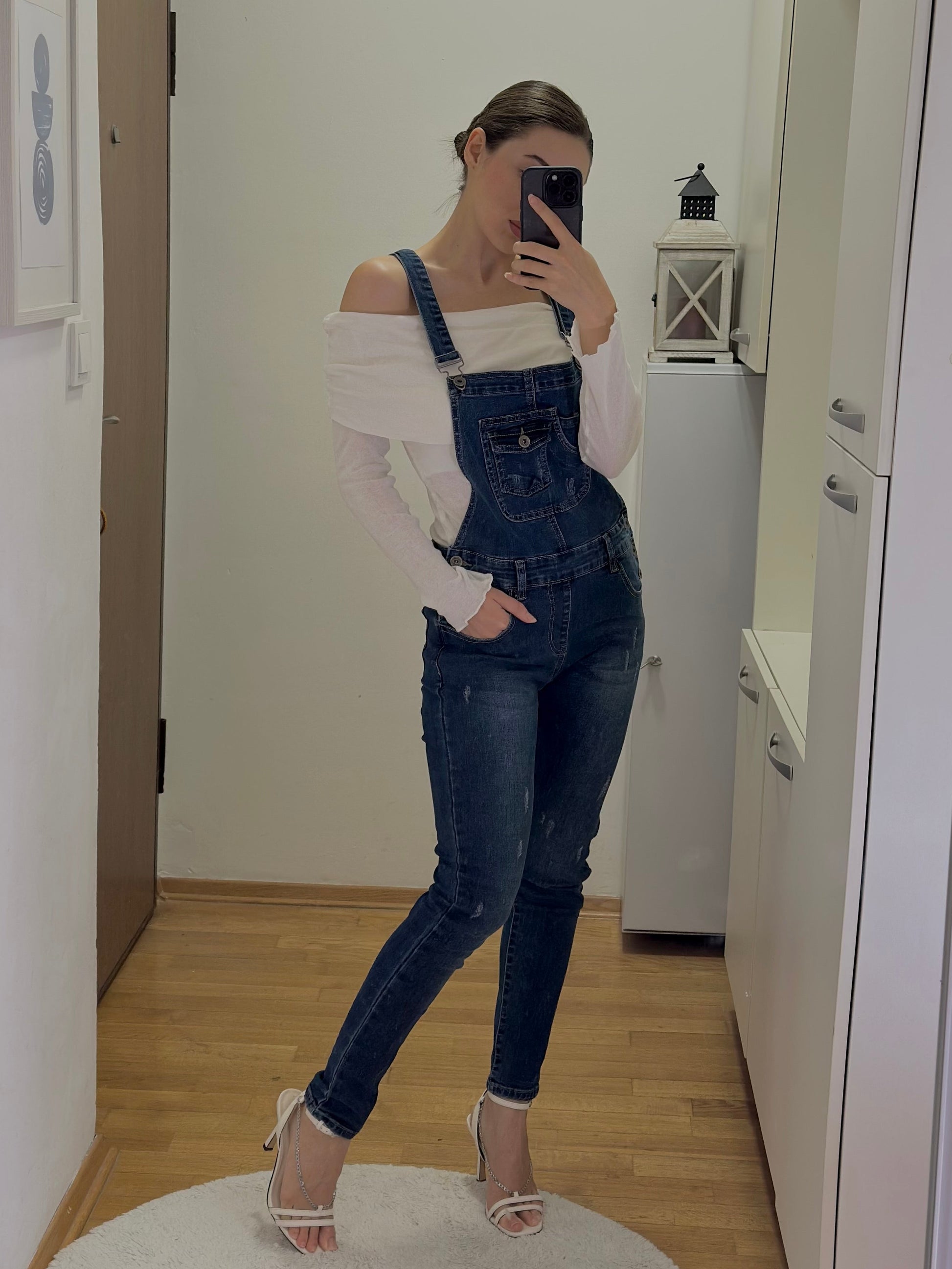 Тексас комбинезон со тесен крој и џеб на предната страна.